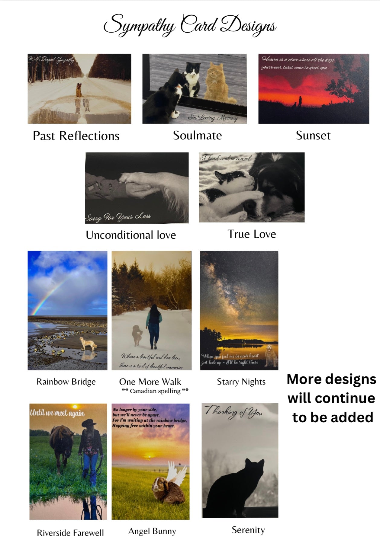 These 6.5” x 5” folded sympathy cards come with a high-quality photo on the front and includes the envelope. These all come blank on the inside with no text.